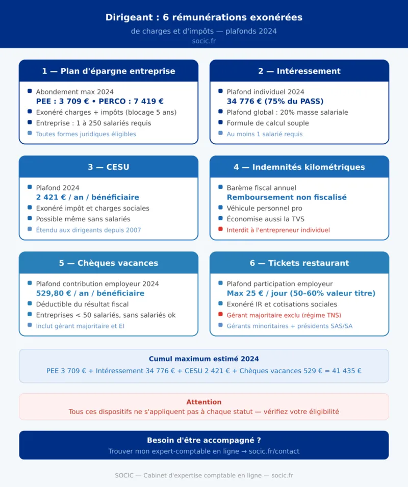 Ces 6 dispositifs permettent d'optimiser votre rémunération en toute légalité — mais tous ne s'appliquent pas à chaque statut. Un expert-comptable en ligne vous aide à identifier ceux qui correspondent à votre situation.