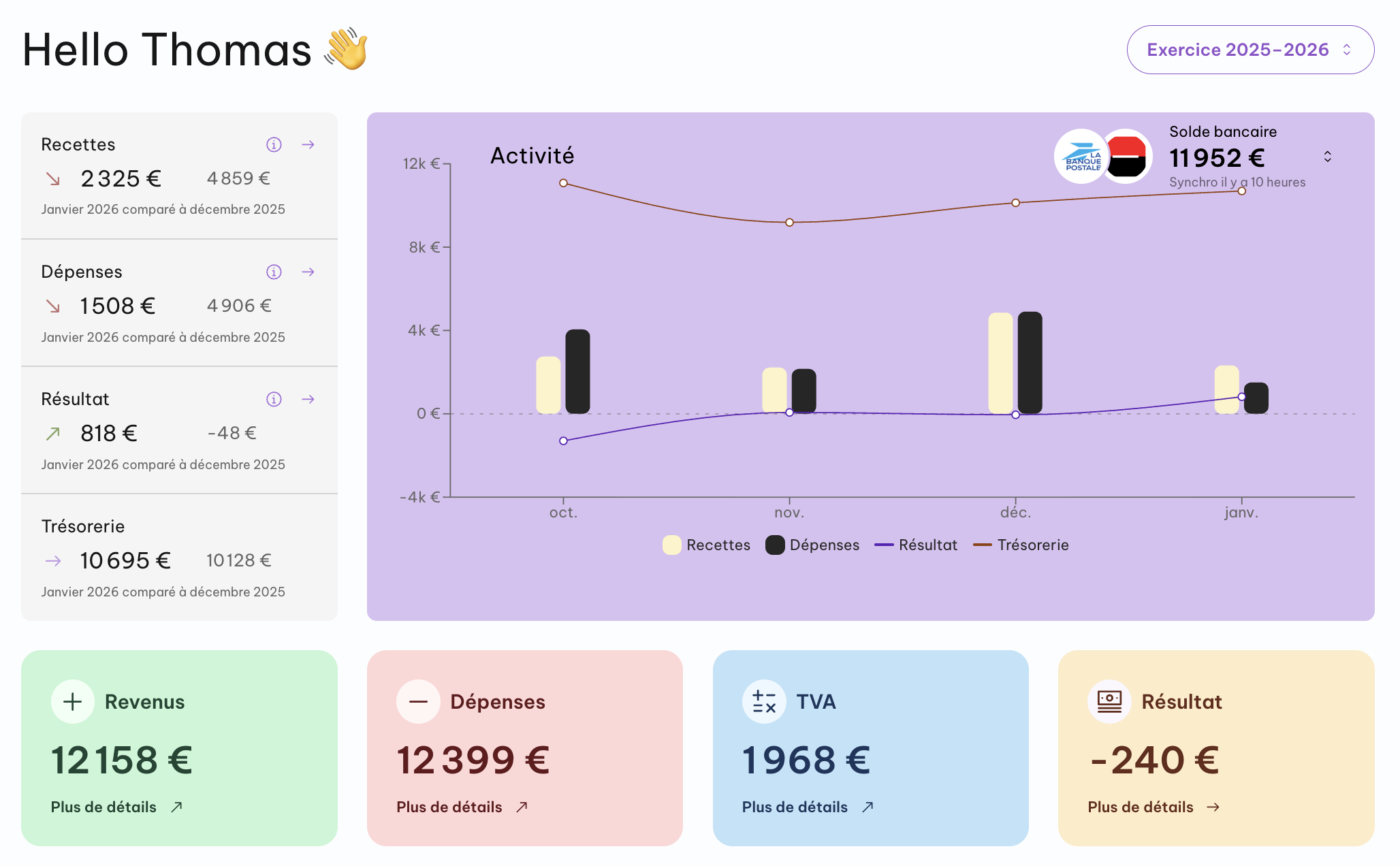 Personnalisez votre tableau de bord en choisissant les dépenses et indicateurs qui comptent pour vous.
