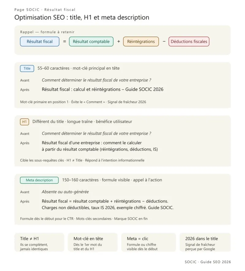 Résultat fiscal = Résultat comptable + Réintégrations fiscales − Déductions fiscales
