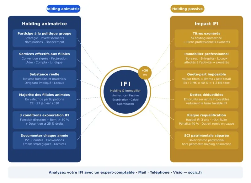 Évaluer mon exposition à l'IFI avec un expert-comptable en ligne ->2. Holding animatrice vs holding passive : la distinction fondamentale