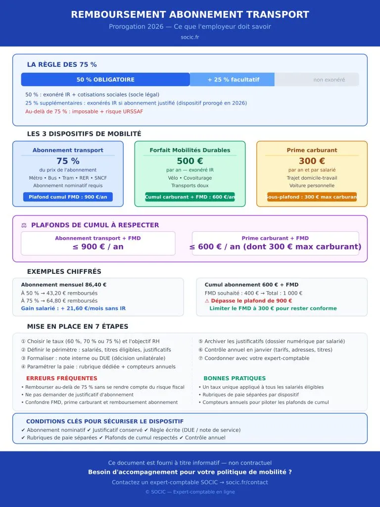 Peut-on rembourser 75 % de l'abonnement transport en 2026 sans impôt pour le salarié ?