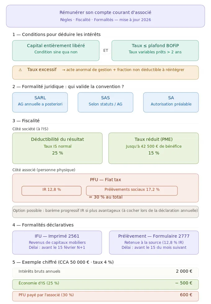 Rémunérer un compte courant d'associé (CCA) : règles, taux, fiscalité et formalités (2026)