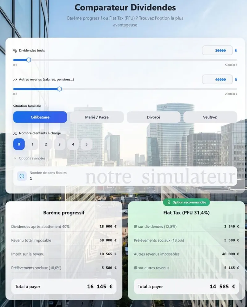 Faites vos calculs sur notre simulateur Flatax/Barème :