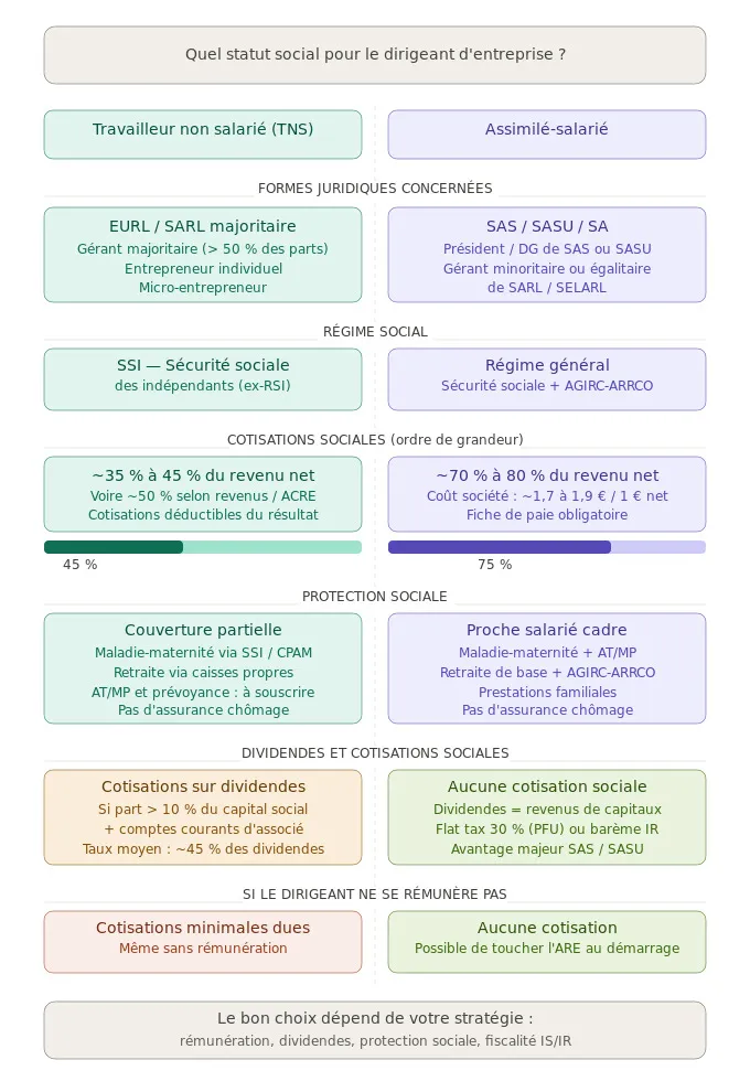 Statut social du dirigeant : TNS ou assimilé salarié, comment choisir ?